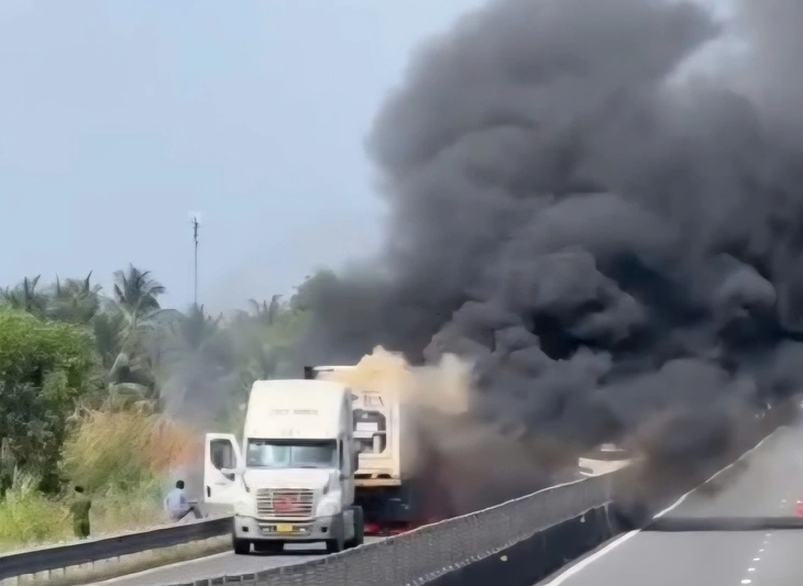 Theo thông tin ban đầu, khoảng 9h30 cùng ngày, tại Km58+400 trên tuyến cao tốc Trung Lương - Mỹ Thuận (hướng về Trung Lương), một xe đầu kéo mang biển số 15LD-01834, kéo theo sơ mi rơ moóc biển số 15R-17461 bất ngờ bốc cháy.
