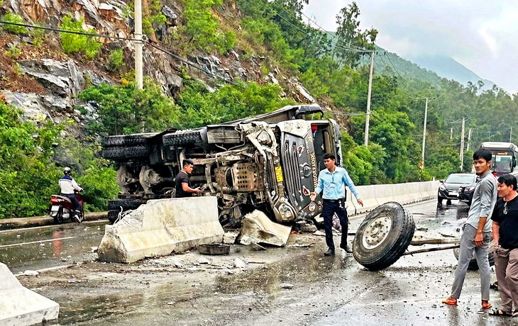 Ngày 3-12, lãnh đạo Đội cảnh sát giao thông khu vực Cam Lâm, Phòng Cảnh sát giao thông Công an tỉnh Khánh Hòa cho biết trên đèo Cù Hin vừa xảy ra vụ tai nạn giao thông khiến một chiếc xe tải bị lật nghiêng, chắn ngang đường.
