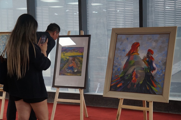 Thưởng tranh của họa sĩ hai nước tại sự kiện Giao lưu văn hóa Việt Nam - Hàn Quốc - Ảnh: T.ĐIỂU