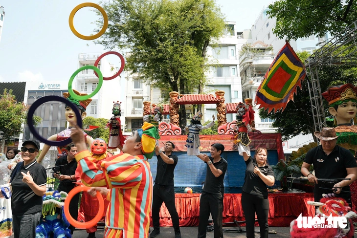 Đây là gian hàng nghệ thuật của Trung tâm Nghệ thuật TP.HCM. Du khách không chỉ xem các tiết mục xiếc, tung hứng, múa rối nước... mà còn có thể trực tiếp trải nghiệm múa rối dây, rối que dưới sự hướng dẫn của nghệ sĩ, tương tác cùng các hoạt náo viên.