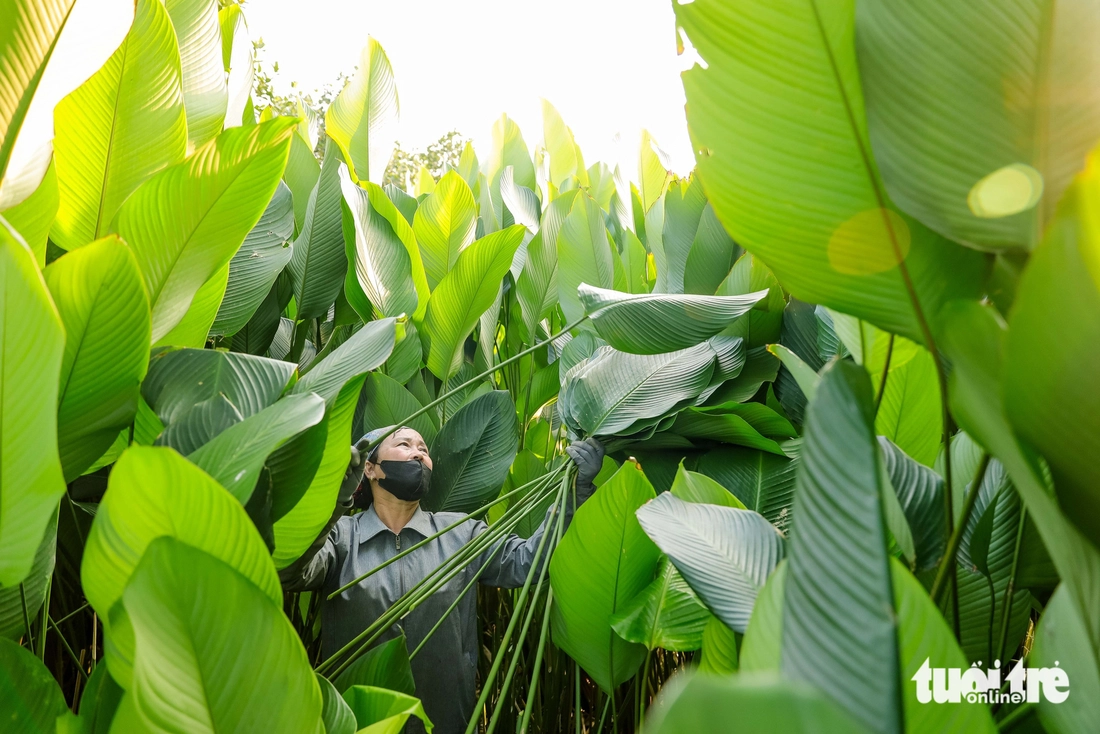 Nhờ thổ nhưỡng phù hợp, cây lá dong ở Tràng Cát phát triển cao quá đầu người, cho chất lượng lá ổn định - Ảnh: DANH KHANG