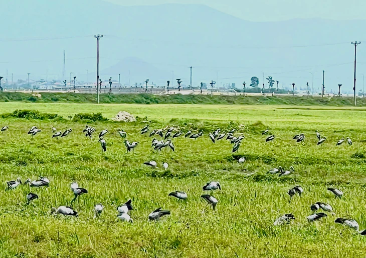 Ngày 23-4, trao đổi với Tuổi Trẻ Online, ông Phan Văn Quang - Chủ tịch UBND phường Sông Trí (Hà Tĩnh), cho biết những ngày gần đây ghi nhận đàn chim lạ với số lượng hàng trăm con bay về kiếm ăn trên một cánh đồng ở địa phương.