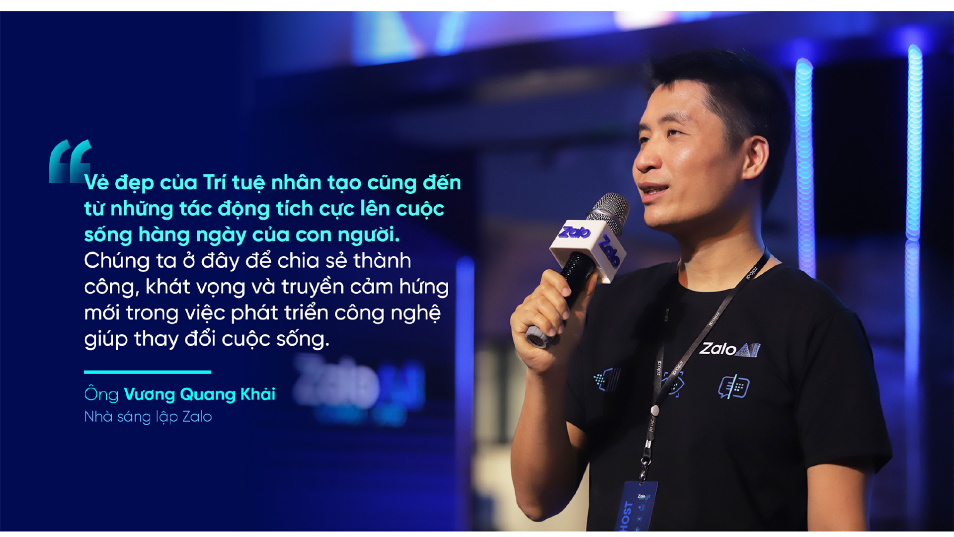 Chia sẻ niềm tin về tương lai của công nghệ Việt Nam, Nhà sáng lập Zalo - Vương Quang Khải khẳng định: "Vẻ đẹp của Trí tuệ nhân tạo cũng đến từ những tác động tích cực lên cuộc sống hàng ngày của con người. Chúng ta ở đây để chia sẻ thành công, khát vọng và truyền cảm hứng mới trong việc phát triển công nghệ giúp thay đổi cuộc sống".